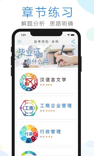 自考學(xué)習(xí)讓你的業(yè)余時間變得充實起來,通過學(xué)習(xí)讓你的知識變得更加豐富,不用去報什么補習(xí)班在手機(jī)上輕松完成自學(xué)。這里有海量的學(xué)習(xí)資源,什么教材以及配套課程都有,還有豐富的試題庫。采用全國最新標(biāo)準(zhǔn)的教材以及最新的試題庫,歡迎有需要的朋友下載使用!