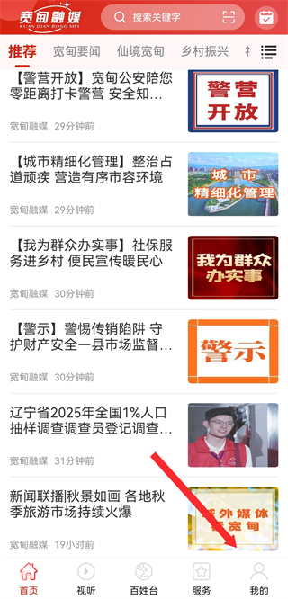1、打開寬甸融媒app,點(diǎn)擊底部我的按鈕,進(jìn)入個人的頁面。