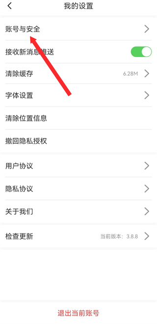 3、在設(shè)置的頁面,點(diǎn)擊賬號與安全,進(jìn)入賬號安全的界面。