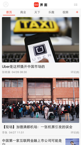 界面新聞,是一款專業(yè)的手機新聞閱讀軟件。是中國第一大報業(yè)集團上海報業(yè),聯(lián)手小米科技、360、海通證券、國泰君安、聯(lián)想弘毅、卓爾傳媒推出的新一代財經(jīng)商業(yè)新聞網(wǎng)站?!敖缑妗庇幸恢嵙妱诺脑瓌?chuàng)報道團隊,他們曾參與創(chuàng)辦《經(jīng)濟觀察報》和《第一財經(jīng)周刊》,團隊骨干還來自《華爾街日報》中文網(wǎng)、《財富》中文版、《21世紀經(jīng)濟報道》、《南方周末》、財新傳媒等。