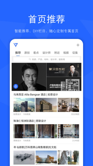 是一個(gè)擁有海量設(shè)計(jì)師相關(guān)的熱點(diǎn)新聞,原創(chuàng)視頻的手機(jī)軟件,在這里你能夠看到很多設(shè)計(jì)類的文章,向你揭示附近酒店大樓的設(shè)計(jì)方式,設(shè)計(jì)背景,開拓你的眼界,增加你的設(shè)計(jì)靈感,還有很多顯示生活中見不到的設(shè)計(jì)藝術(shù)品,這里也能通過視頻的形式看到,每天你還能和圈子內(nèi)的人討論互助。