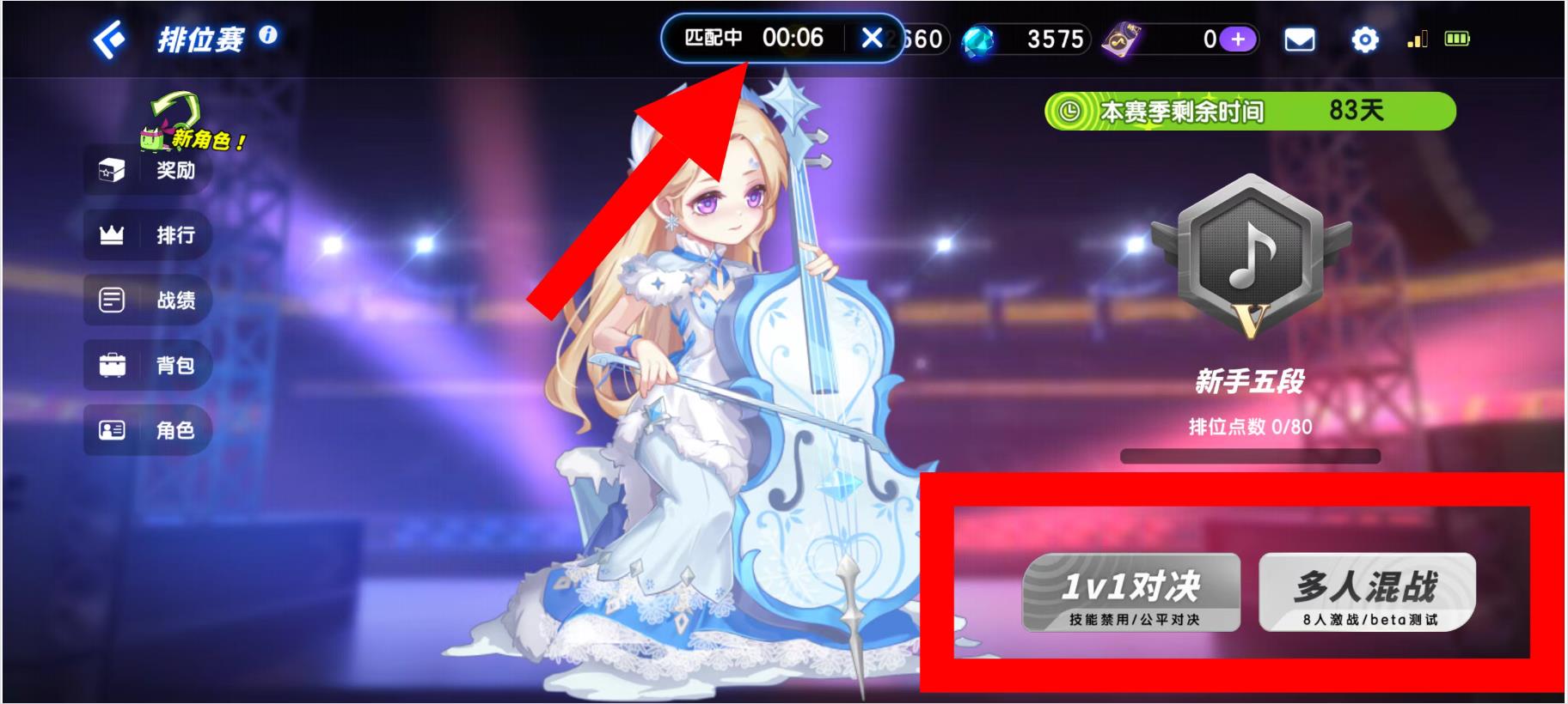 4、然后點(diǎn)擊多人混戰(zhàn)以后,上方出現(xiàn)匹配中即可進(jìn)入開(kāi)始排位賽。