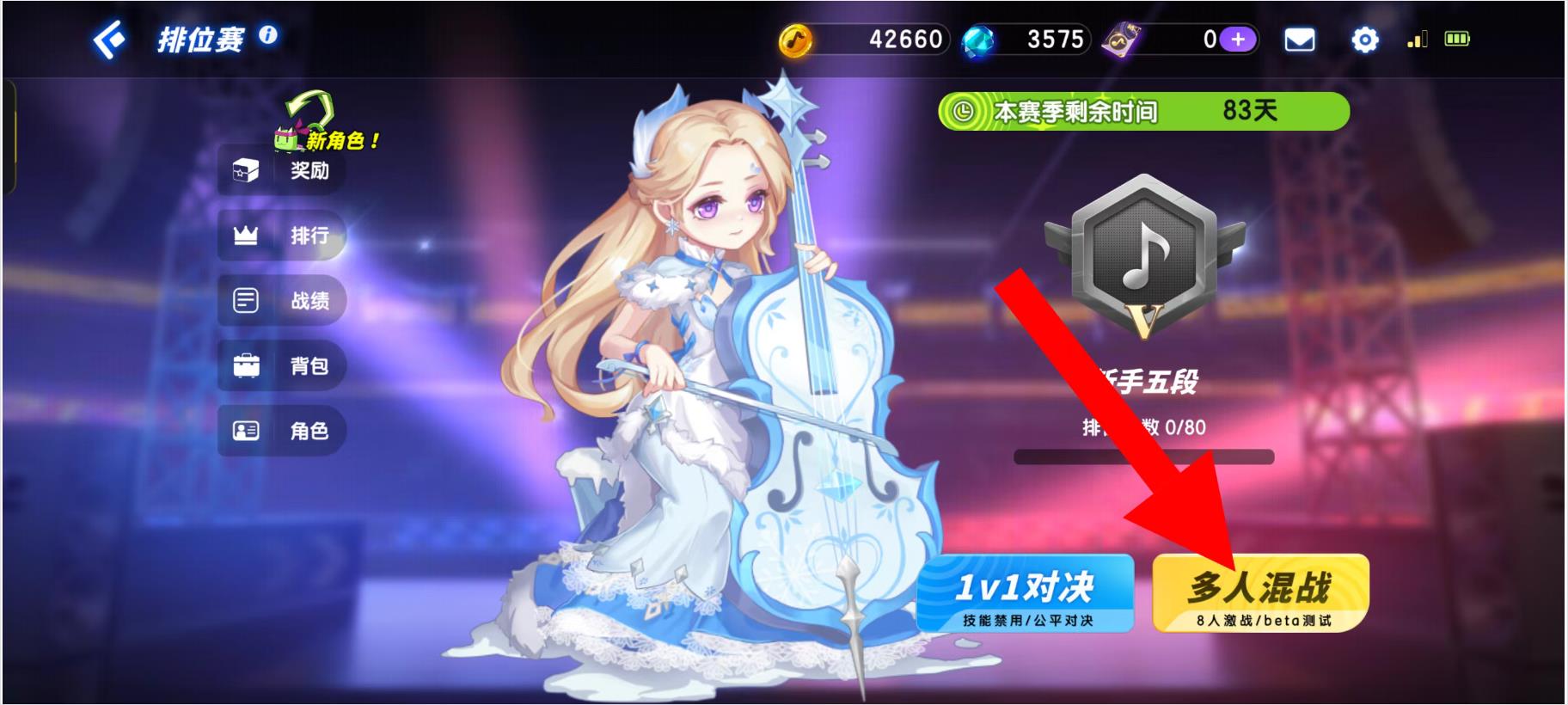 3、進(jìn)入排位賽界面后,可以選擇多人混戰(zhàn)模式可參與排位賽。