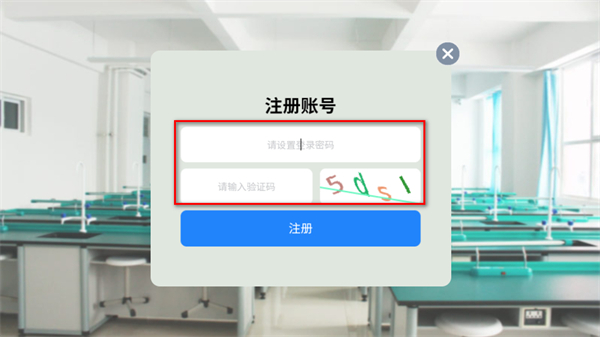 2、進入注冊賬號頁面后,在輸入框中設置登錄密碼,并輸入驗證碼。