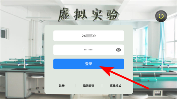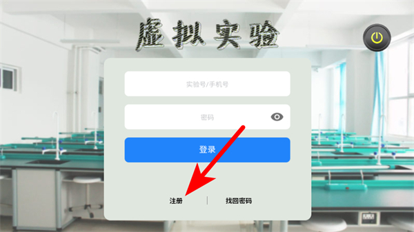 1、打開虛擬實驗APP,在登錄頁面點擊注冊選項。
