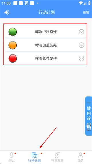悠然呼吸患者端軟件安卓版供哮喘患者來使用,行動(dòng)計(jì)劃采用國際公認(rèn)的交通信號燈式管理方案,把哮喘控制狀態(tài)分為綠、黃、紅三個(gè)區(qū)域,每個(gè)區(qū)域都有明確標(biāo)準(zhǔn)和對應(yīng)措施。家長錄入醫(yī)生開具的用藥方案后,根據(jù)每日峰流速測試結(jié)果和癥狀,自動(dòng)跳轉(zhuǎn)至對應(yīng)區(qū)域的用藥建議。