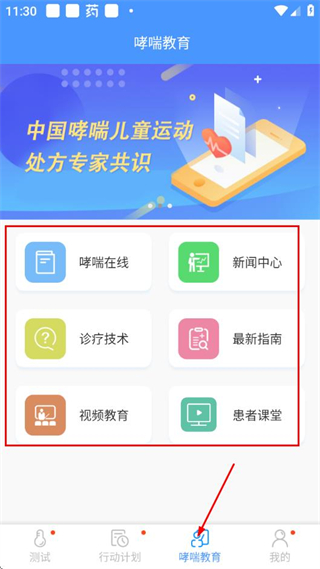 3、在對應(yīng)頁面提供哮喘在線知識 診療技術(shù) 患者課堂等資源,幫助用戶學(xué)習(xí)疾病相關(guān)內(nèi)容。