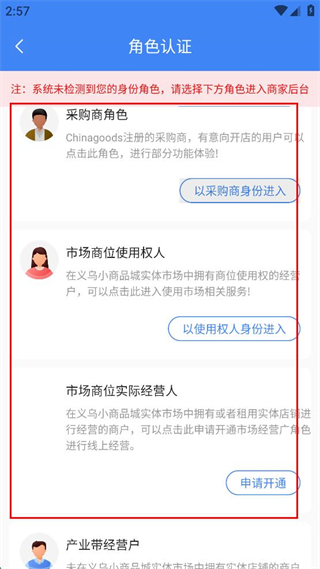 4、注冊(cè)后進(jìn)入角色認(rèn)證頁面,可選擇角色進(jìn)行相應(yīng)操作。