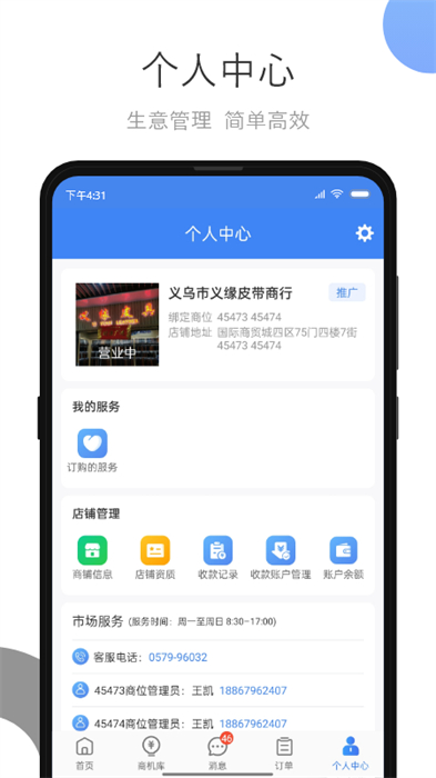 小商品城賣家版app為義烏賣家打造的店鋪管理平臺(tái),一鍵為你連接小商品城平臺(tái)為賣家提供專業(yè)的管理工具,在這里你可以管理所有店鋪的產(chǎn)品,包括每日的銷售數(shù)據(jù)都會(huì)清晰顯示在后臺(tái)供你查看,每個(gè)訂單都有詳細(xì)記錄,實(shí)時(shí)為你錄入最新的銷售數(shù)據(jù),歡迎有需要的朋友下載使用。