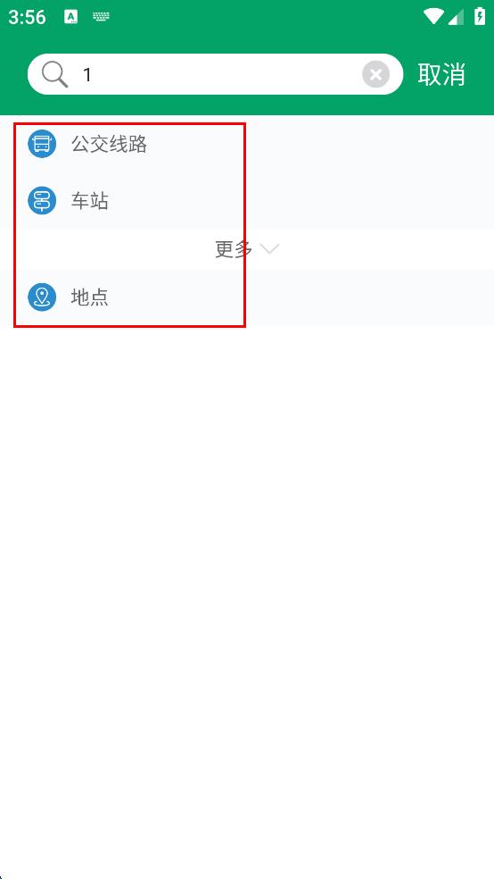 4、在搜索框輸入相關(guān)信息,可從彈出的“公交線路”“車站”“地點”等選項中選擇,進(jìn)行公交信息查詢。