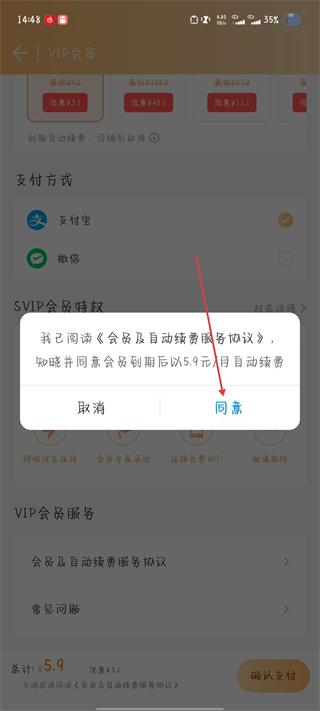 4、點(diǎn)擊同意按鈕,即可完成付款且開(kāi)通會(huì)員。
