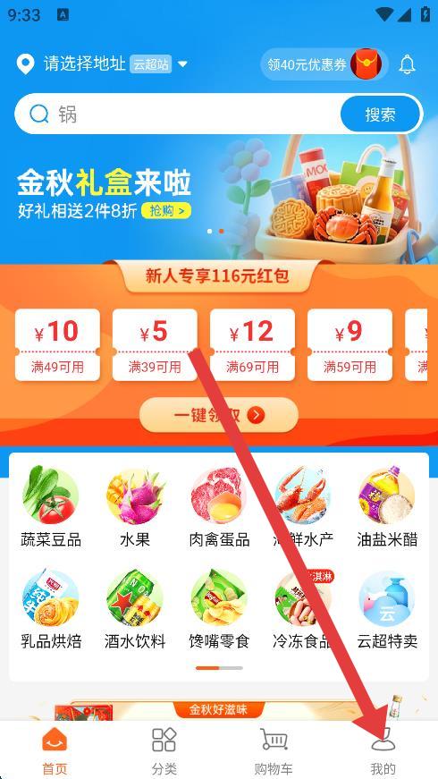 1、打開小6買菜,點擊底部導(dǎo)航欄我的,進入個人中心頁面。