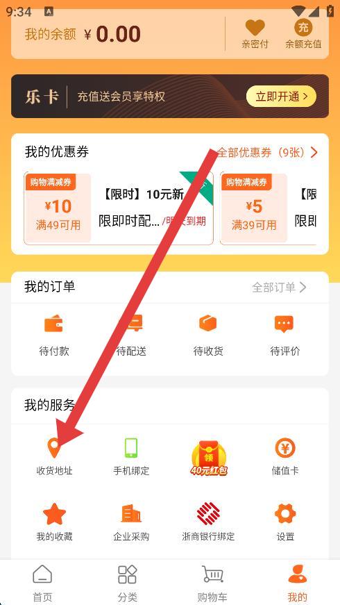 2、在個人中心,找到我的服務(wù)板塊,點擊收貨地址選項。