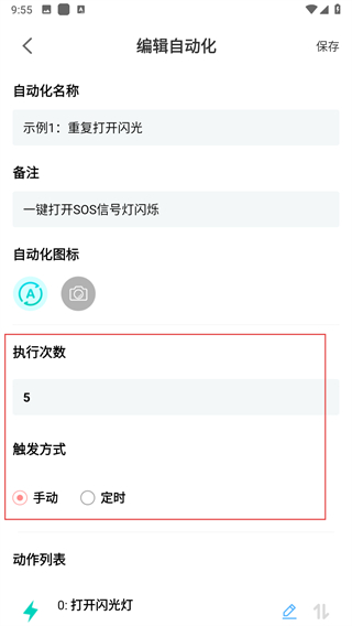 3、在編輯自動化頁面,可修改執(zhí)行次數(shù)的數(shù)值,對自動化的基礎(chǔ)參數(shù)進(jìn)行調(diào)整。