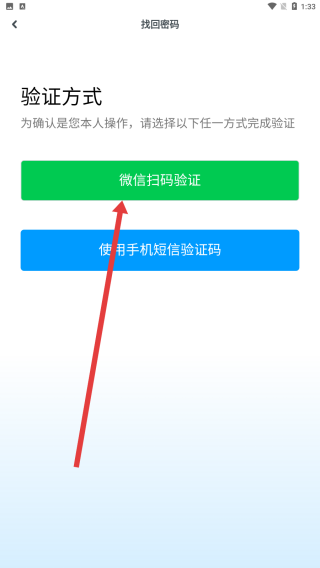 3、在找回密碼的驗(yàn)證方式頁(yè)面,可以選擇微信掃碼驗(yàn)證,通過(guò)微信掃碼完成身份確認(rèn),推進(jìn)密碼找回操作。