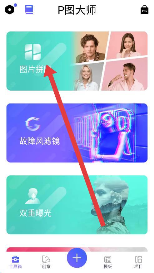 1、打開P圖大師,在主界面中點(diǎn)擊圖片拼圖選項(xiàng)。