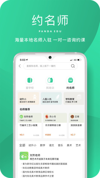 熊貓上學(xué)是集查學(xué)校、找培訓(xùn)、約名師和淘課程為一體的教育服務(wù)app,主要給0-15歲的孩子提供全學(xué)科教育解決方案,涵蓋了全部的托管托育、幼兒園、小學(xué)、中學(xué)和各類優(yōu)質(zhì)藝術(shù)、興趣培訓(xùn)機構(gòu)(目前僅支持成都市全域的查詢,更多城市正在努力添加中...),不僅可以快速搜索查看學(xué)校的所有詳細(xì)信息,還能獲取到學(xué)區(qū)、政策等最新動態(tài),并隨時發(fā)起咨詢和問答,更有獨特的教育地圖模式可幫助用戶快速查找附近學(xué)校,還有專業(yè)老師在線答疑解惑,幫助家長解決孩子的上學(xué)難題,同時還能預(yù)約本地名師進(jìn)行一對一授課,選擇我們提供的各種精品課程、機構(gòu)課程、名師課程等服務(wù),線上+線下多元化、多模式的內(nèi)容讓孩子完成全方面的學(xué)習(xí)。我們的愿景是,讓上學(xué)更簡單!