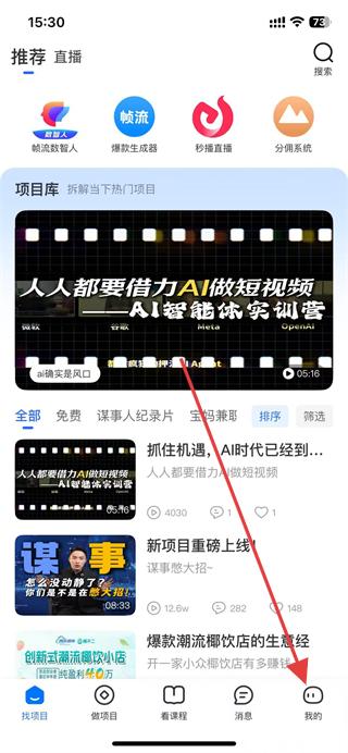 1、打開謀事app,點(diǎn)擊底部導(dǎo)航欄的我的選項(xiàng)。