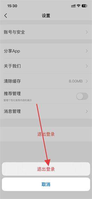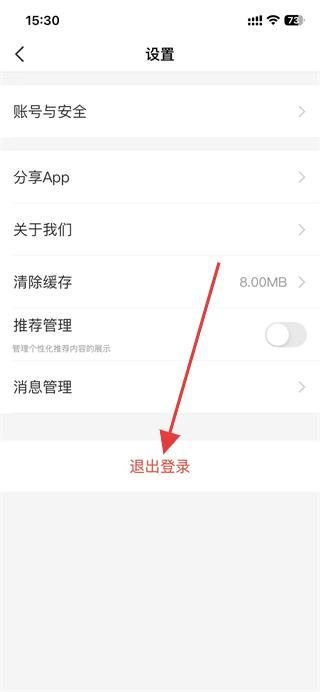 3、進(jìn)入設(shè)置頁面后,找到并點(diǎn)擊退出登錄選項(xiàng)。