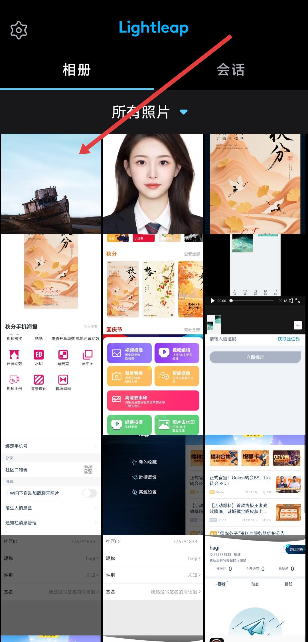 1、在Lightleap的相冊界面,點擊需要更換背景的照片,進入編輯頁面。