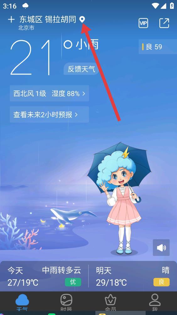 1、打開墨跡天氣,點(diǎn)擊上方顯示的當(dāng)前定位位置。