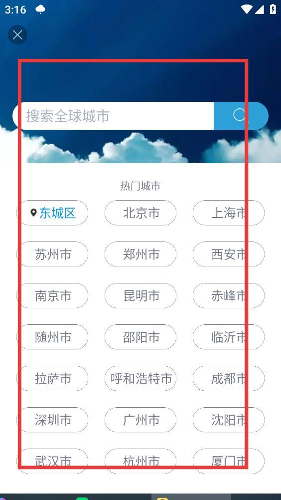 3、在搜索界面,輸入或選擇目標(biāo)城市名稱。
