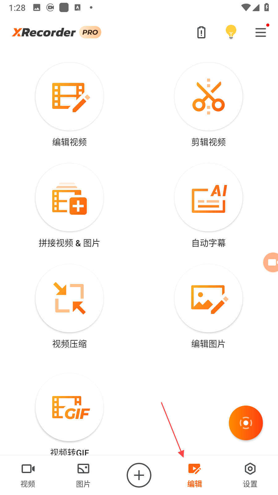 3、錄制完成后點擊底部導航欄的編輯,進入編輯界面,這里提供編輯視頻、剪輯視頻、拼接視頻&圖片、自動字幕、視頻壓縮等多種編輯功能,可對錄制的視頻或圖片進行后期處理。