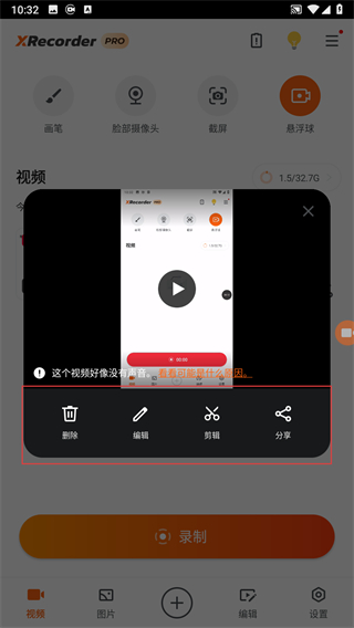 4、錄制完成后,可進行刪除、編輯、剪輯、分享等。