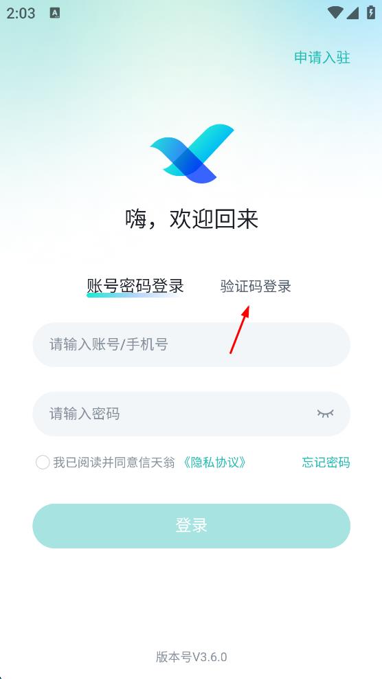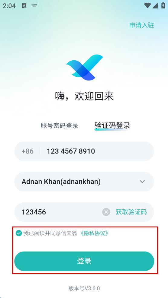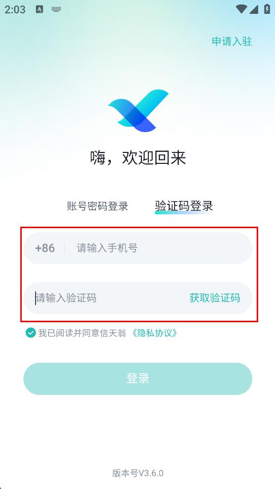 4、勾選“我已閱讀并同意信天翁隱私協(xié)議,點擊“登錄”按鈕,完成登錄操作。