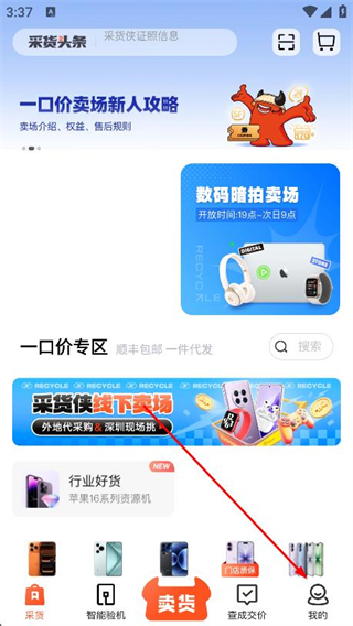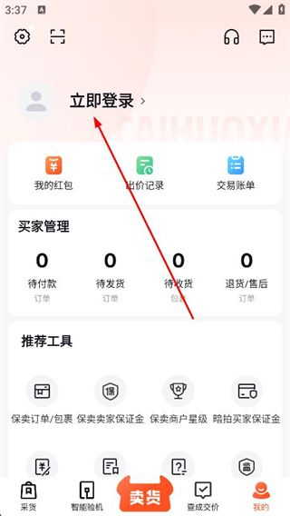 1、打開采貨俠APP,點(diǎn)擊底部導(dǎo)航欄最右側(cè)的我的選項(xiàng)。