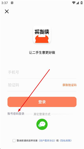 3、在登錄界面,找到并點(diǎn)擊下方的賬號(hào)密碼登錄選項(xiàng)。