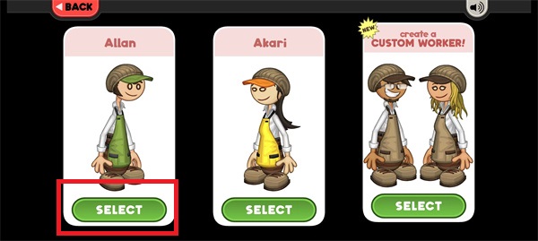 2、緊接著就需要選擇我們的店員,點(diǎn)擊店員下方的【select】就可以進(jìn)入到到游戲環(huán)節(jié);