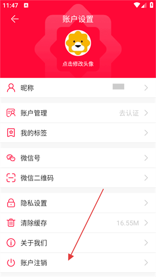 3、進(jìn)入賬戶設(shè)置頁(yè)面后,下滑找到賬戶注銷選項(xiàng)并點(diǎn)擊。