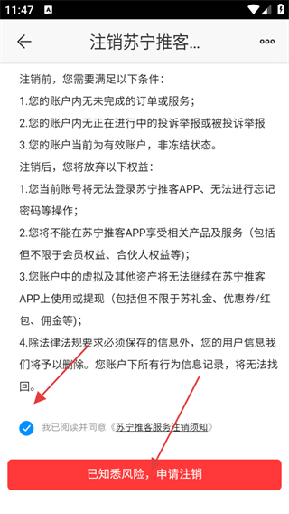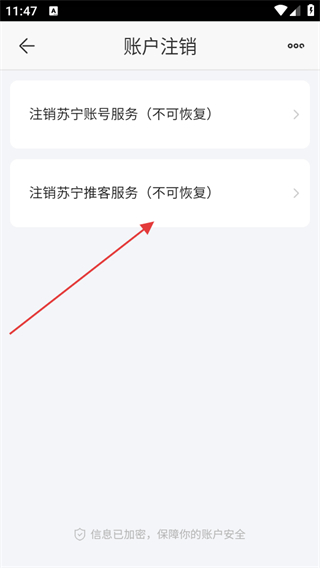 4、在賬戶注銷頁(yè)面,選擇注銷蘇寧推客服務(wù)。