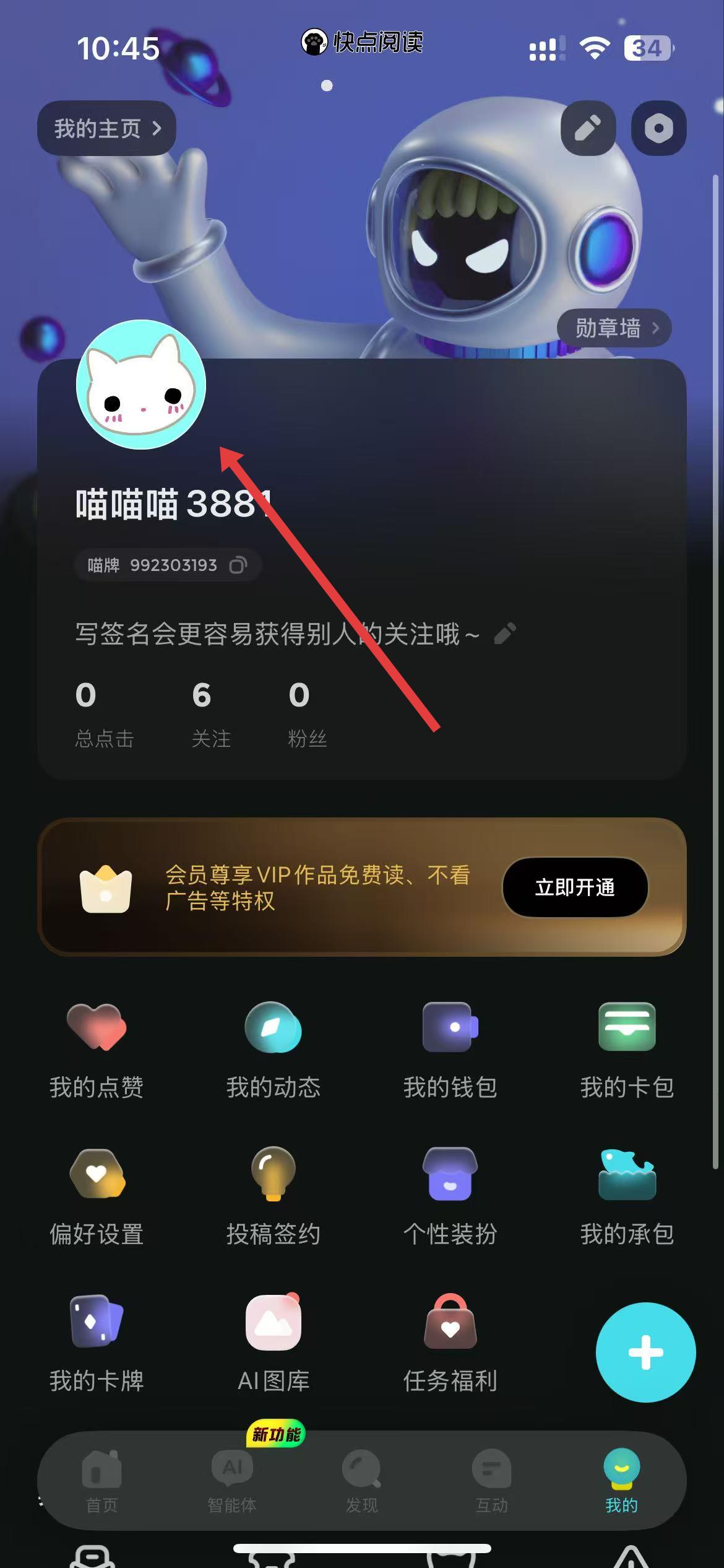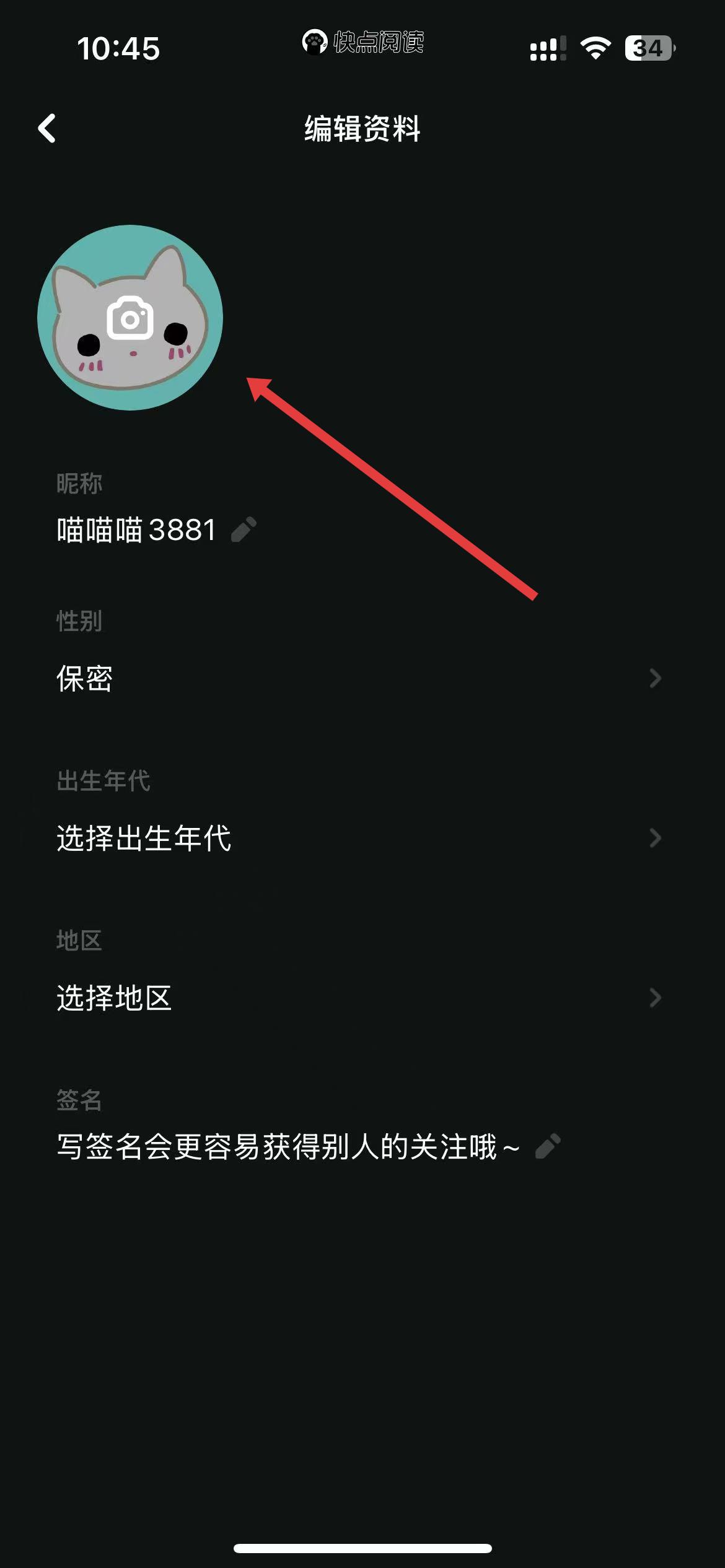 2、在個(gè)人頁面中,點(diǎn)擊頭像區(qū)域進(jìn)入編輯資料界面。