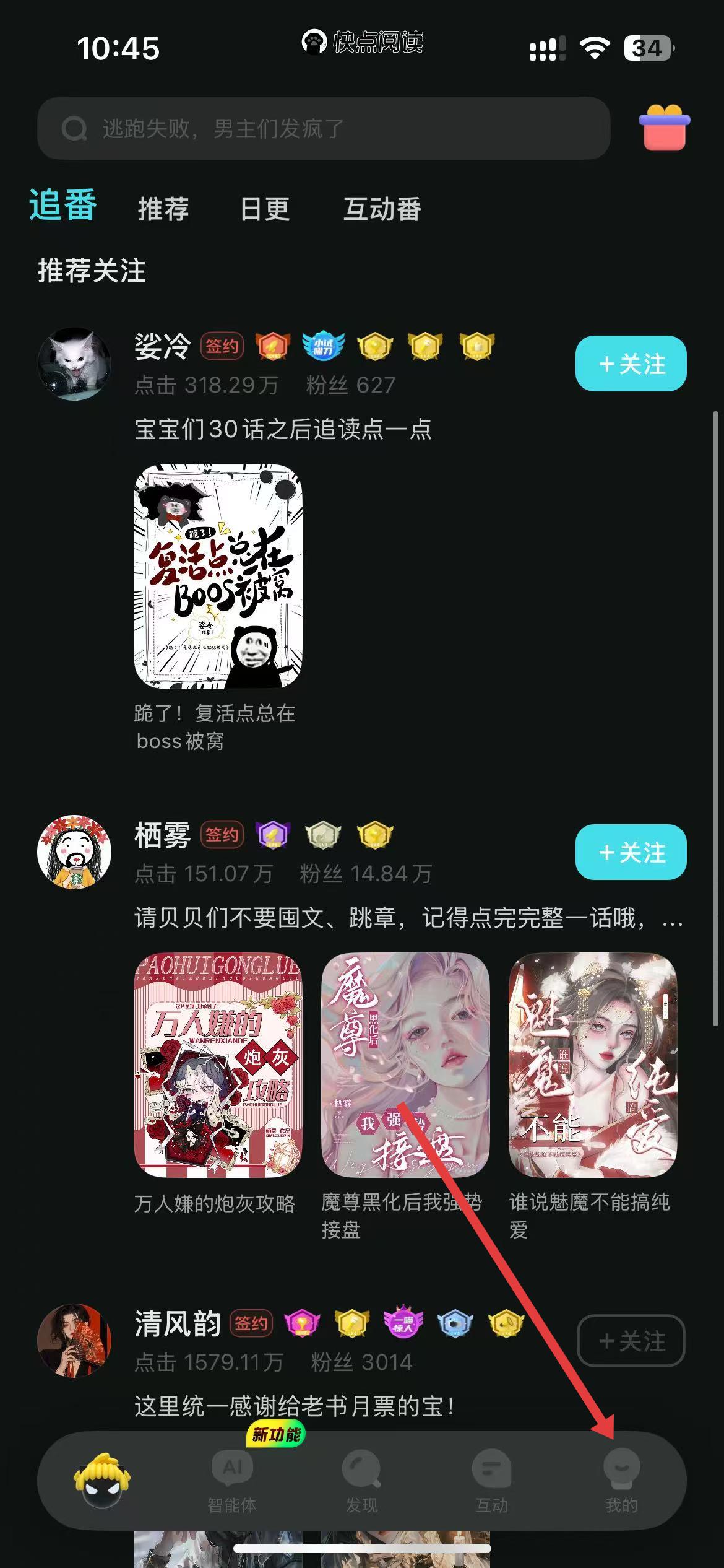 1、打開快點(diǎn)閱讀APP,點(diǎn)擊右下角我的進(jìn)入個(gè)人頁面。
