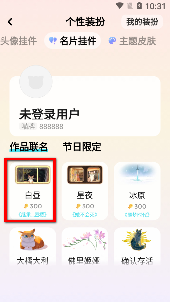 4、在名片掛件選擇界面,選擇白晝等掛件,即可完成名片掛件更換操作。