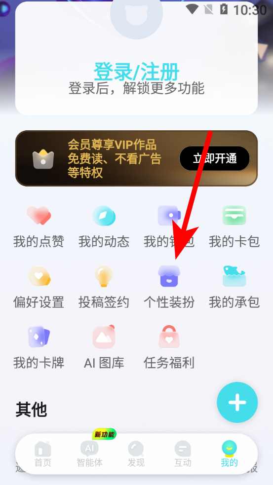 2、在個(gè)人中心界面,點(diǎn)擊個(gè)性裝扮選項(xiàng),進(jìn)入個(gè)性裝扮頁面。