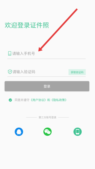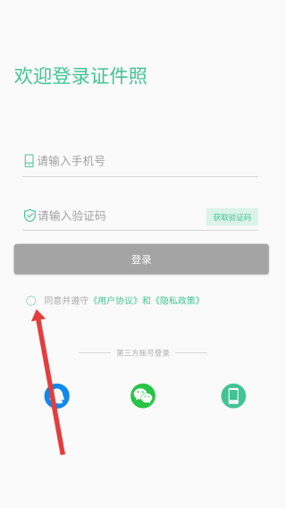 4、在勾選好同意按鈕后,點擊輸入框填寫手機號以獲取驗證碼后完成登錄操作。