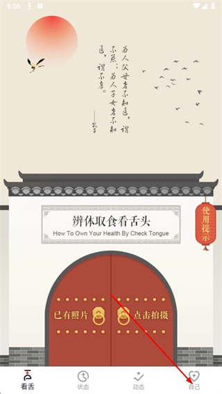 1、打開看舌頭APP,點擊導(dǎo)航欄中的自己。