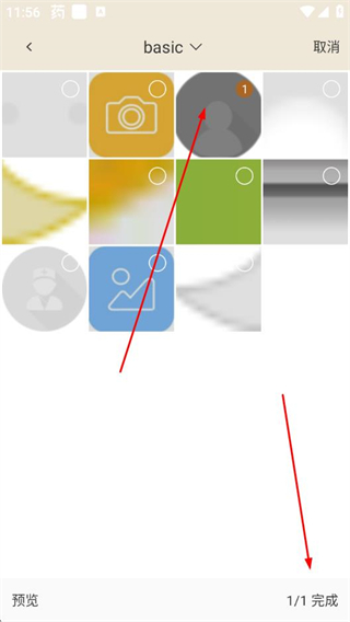 3、在相冊中選中目標(biāo)照片后,點擊完成,將照片上傳至App。