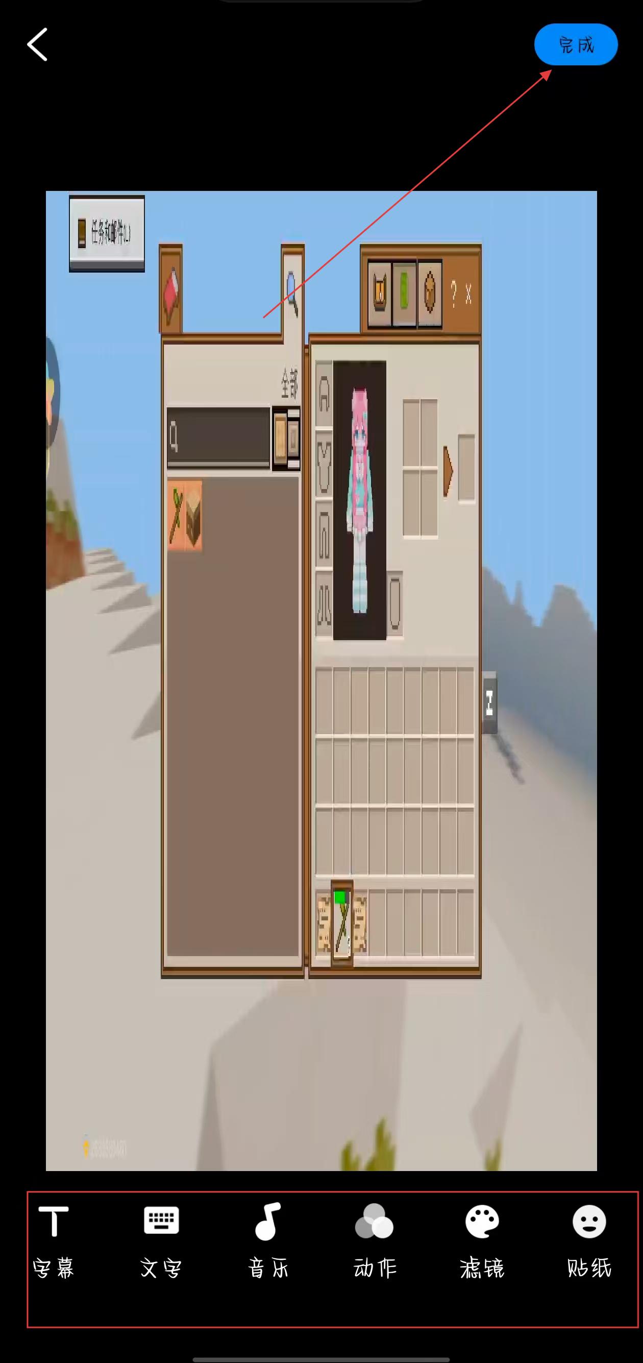 4、在最終編輯界面,可使用底部工具為視頻添加效果,全部設(shè)置好后點(diǎn)擊右上角完成,即可保存。