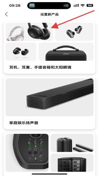 在 bose 應(yīng)用程序中,在“get connected”(進(jìn)行連接)屏幕上選擇您的產(chǎn)品后,會(huì)有“select an accessory”(選擇配件)彈出窗口出現(xiàn)