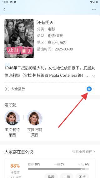 1、打開(kāi)影視大全APP,通過(guò)首頁(yè)瀏覽視頻,進(jìn)入視頻詳情頁(yè),點(diǎn)擊播放按鈕即可。