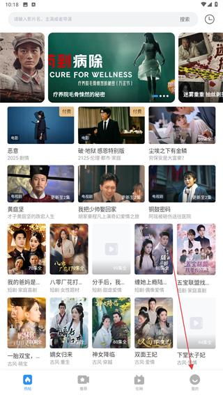 1、啟動(dòng)影視大全的APP,進(jìn)入首頁(yè)點(diǎn)擊右下我的按鈕。
