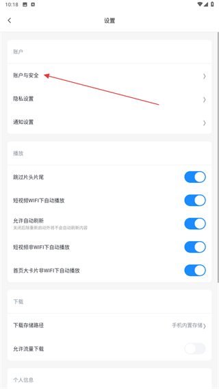 3、在設(shè)置的界面內(nèi),在賬戶下點(diǎn)擊賬戶與安全的按鈕。