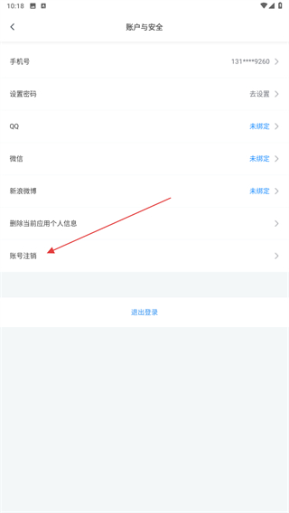 4、進(jìn)入賬戶與安全的界面內(nèi),點(diǎn)擊下方賬號(hào)注銷即可。