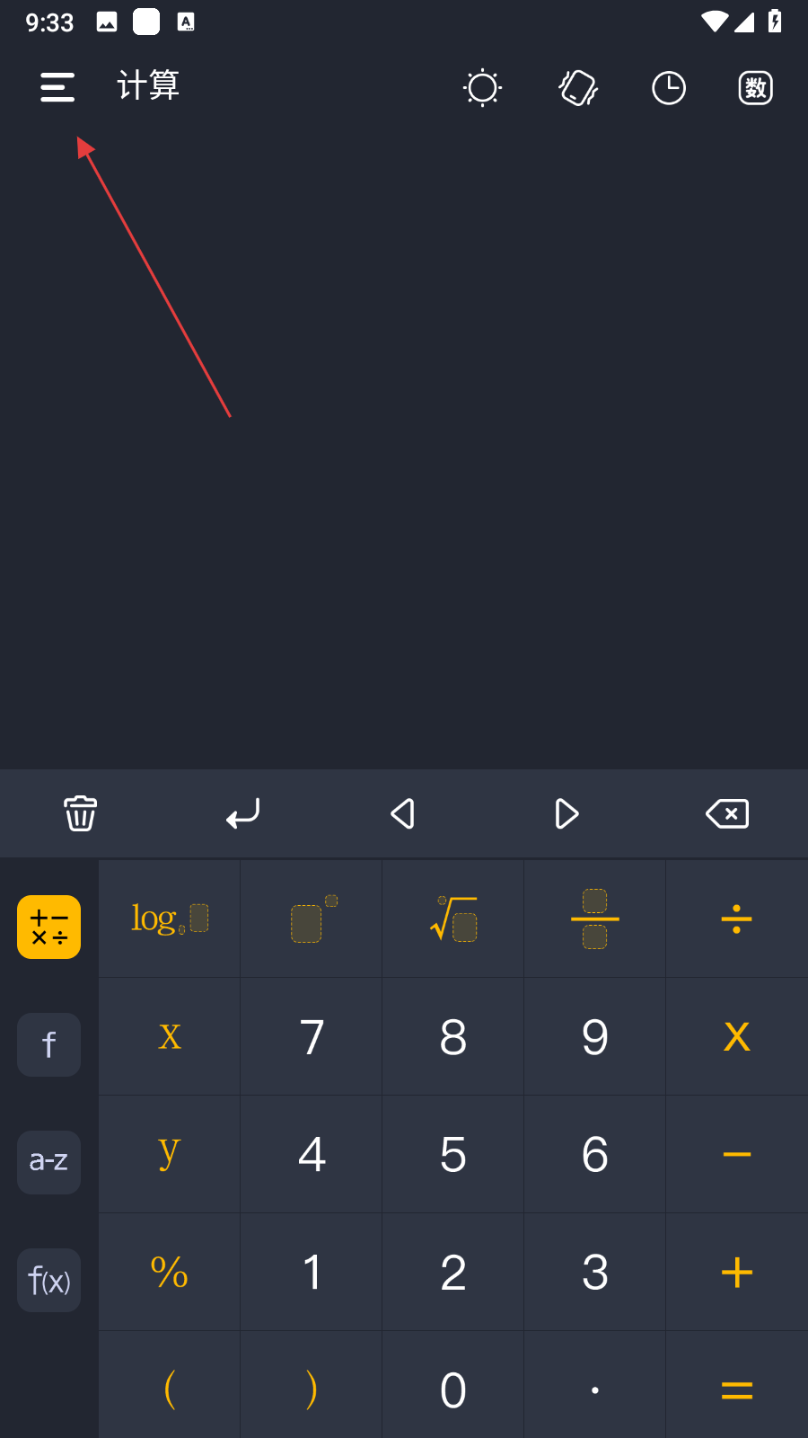 1、打開計算器應(yīng)用,點(diǎn)擊界面左上角三條橫線形狀的菜單按鈕,展開側(cè)邊欄菜單。