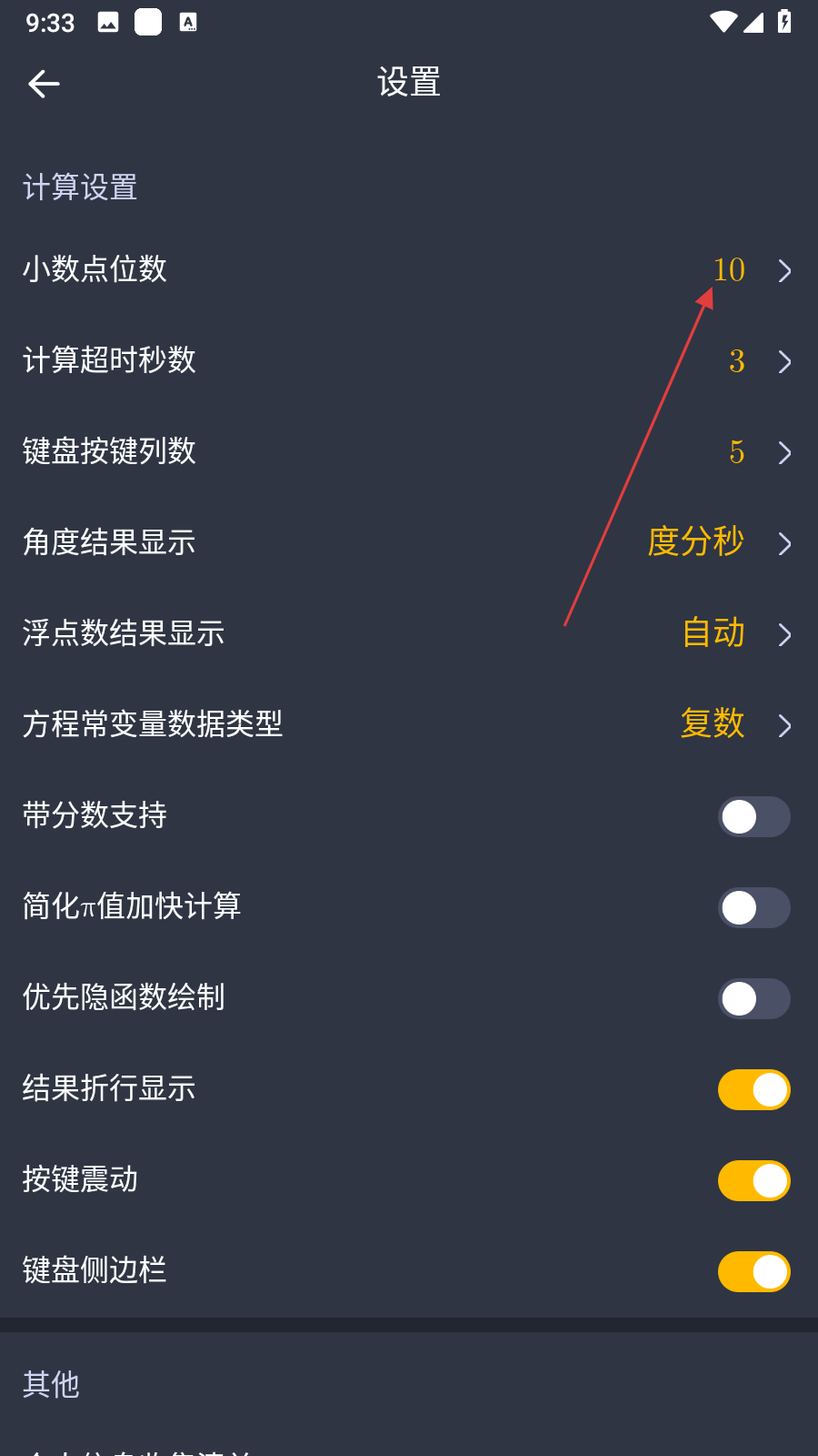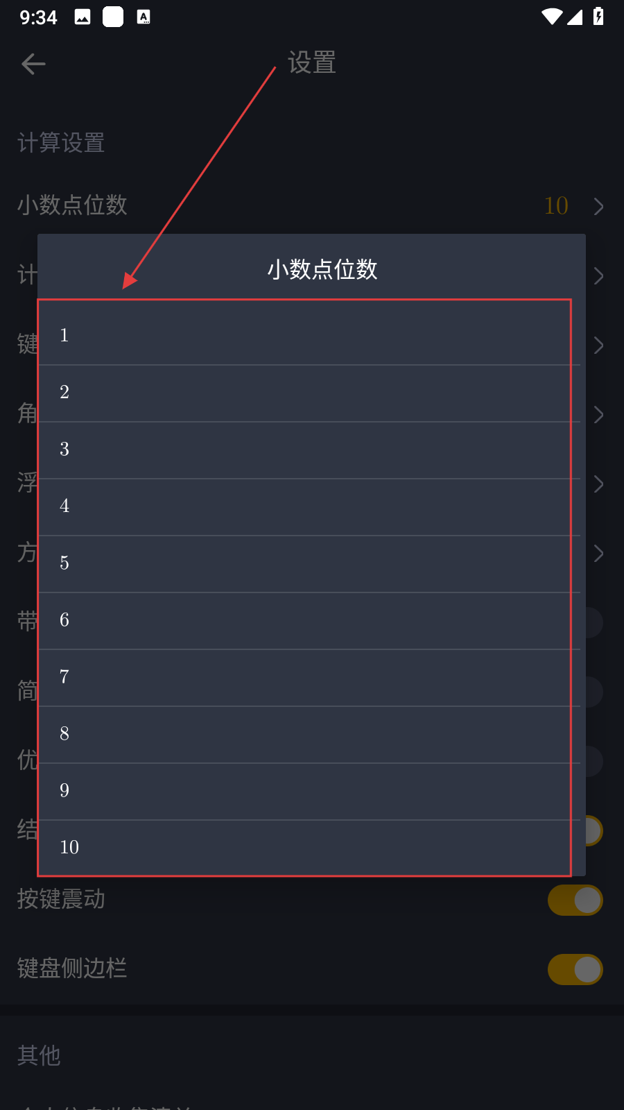 3、在設(shè)置界面中,找到小數(shù)點(diǎn)位數(shù)選項(xiàng),點(diǎn)擊該選項(xiàng)。