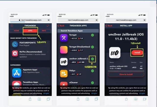 步驟 4、點(diǎn)APPS(軟件) 點(diǎn)藍(lán)色打鉤 點(diǎn)install(安裝)。
